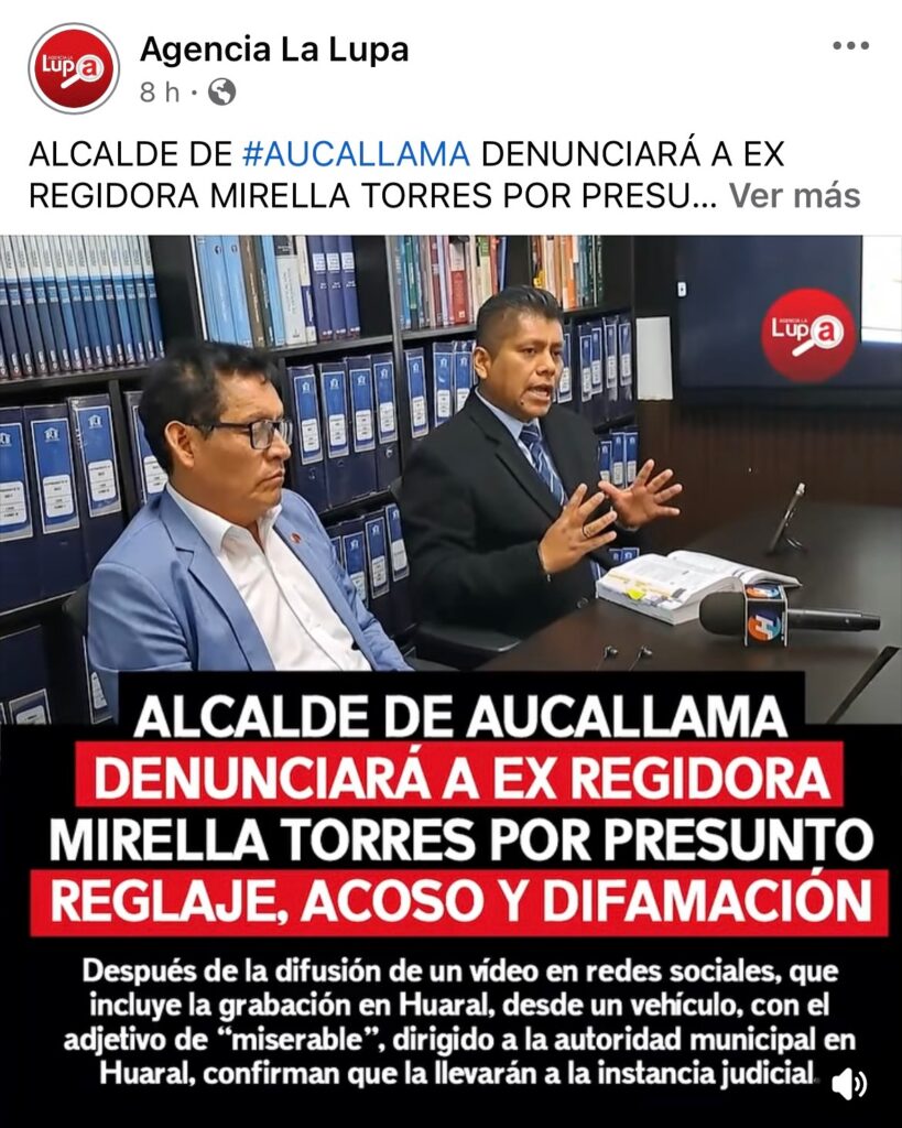 Inicio - Noticias - Aucallama: Denuncia por acoso y difamación por el alcalde contra ex regidora de Aucallama